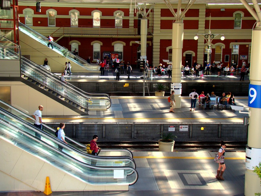 | Dette er sentrum av kollektivtransporten i Perth og Vest-Australia, Perth Central togstasjon. Forbausende lite og forbausende fredelig, sett i forhold til at det er mer enn halvannen millioner mennesker som skal fraktes hit og dit. Forklaringen er at stort sett alle kjører egen bil, eller flyr hvis de skal langt. Og det finnes ikke noe tog som går til flyplassen. |