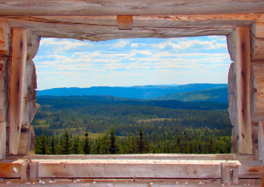 Et uthus på en seter ved Gullenhaugen stod åpent. Utsikten fra tunet var superfin, nesten som et maleri. Inntrykket ble enda litt forsterket da jeg kunne bruke et sydvendt vindu som innramming.