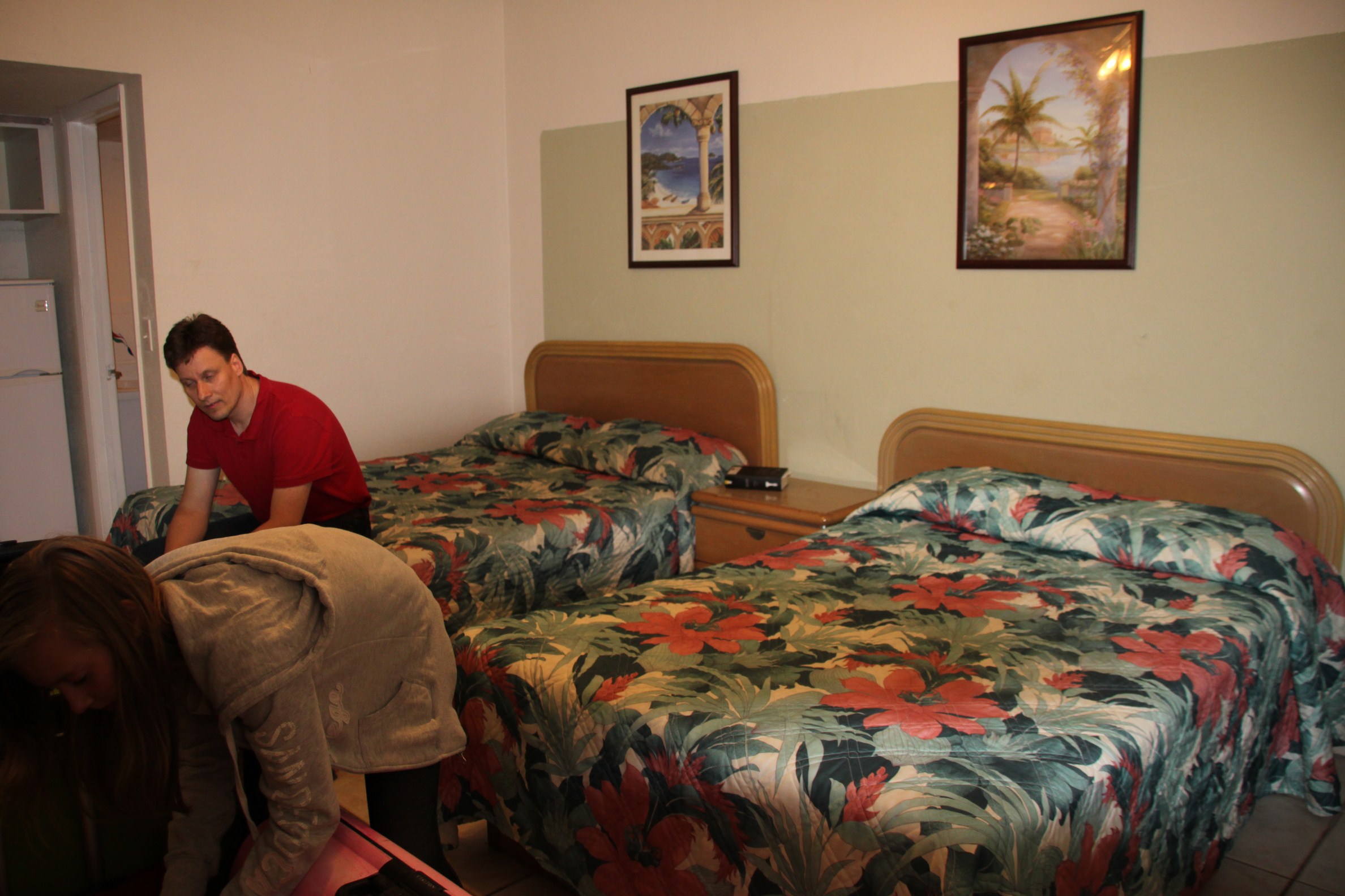 mellom hotellet og stranda.Da vi kom fikk vi et dobbeltrom i dårlig forfatning. Det luktet