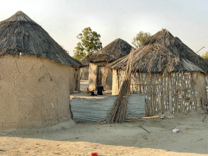 Når man skal bygge hus så bruker man det man har for hånden. I Maun har man for hånden stort sett bare to ting; Gjørme og tomme ølbokser. Heldigvis blir det ganske ok vegger av nettopp det. |