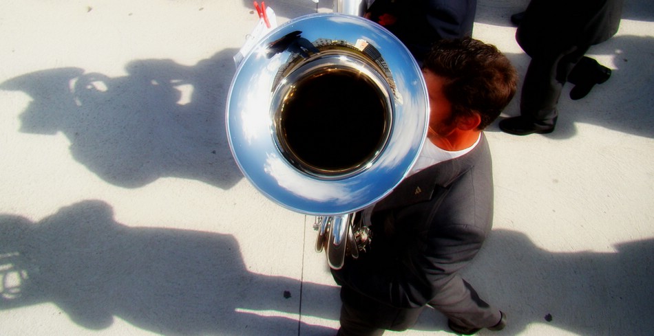 A self-portrait (no, I'm not playing the instrument, look closer), from a parade during the celebration of the Carnation Revolucion, the liberation of Portugal on April 25, 1974. |