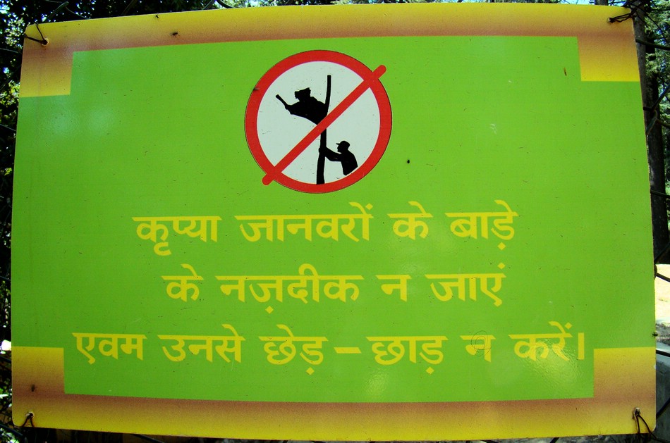 Det var ikke den fineste dyrehagen jeg har sett, og dessverre var det ikke lov til å riste dyr ned fra trærne. Tror jeg dette skiltet sier. |