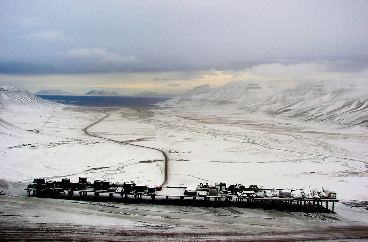 Few truck workshops offer a better view than this one. Spare parts for the 35 ton coal freighters are lined up at the top of this hill in Advent Valley near Longyearbyen. |