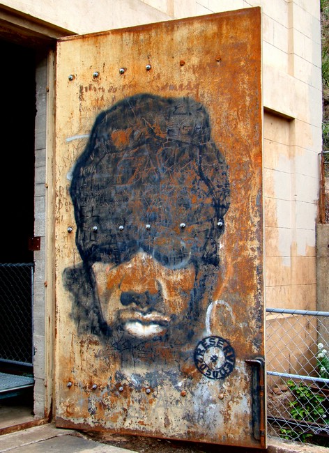 On the door of a closed-down hydro power plant in a canyon outside Launceston I found this graffiti piece. Unfortunately, I think it's just a rap artist or something. There certainly aren't many traces left of the indigenous natives, the aborigines, in Tasmania. The British managed to pretty much eradicate the locals there. This and other atrocities are "officially remembered" in Australia on May 26 every year, National Sorry Day. |