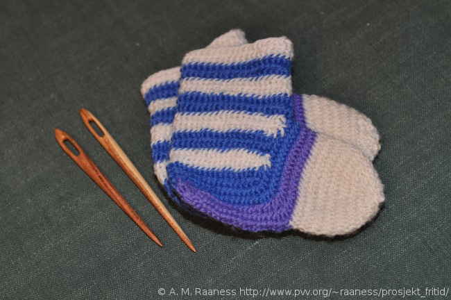 Min favoritt er den siste som også kalles “Norwegian all-in-one” på Shelaglewins side. Her lager man et lite tåstykke før man lager en remse som blir “kimen” til sålen, før man jobber seg utover fra sålekimen og rundt foten.